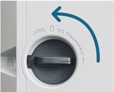 Drehen Sie den DC-Trennschalter am Wechselrichter nach links bis er auf 0 steht. (ruhig etwas beherzter drehen, da der Schalter schwergängig geht)
